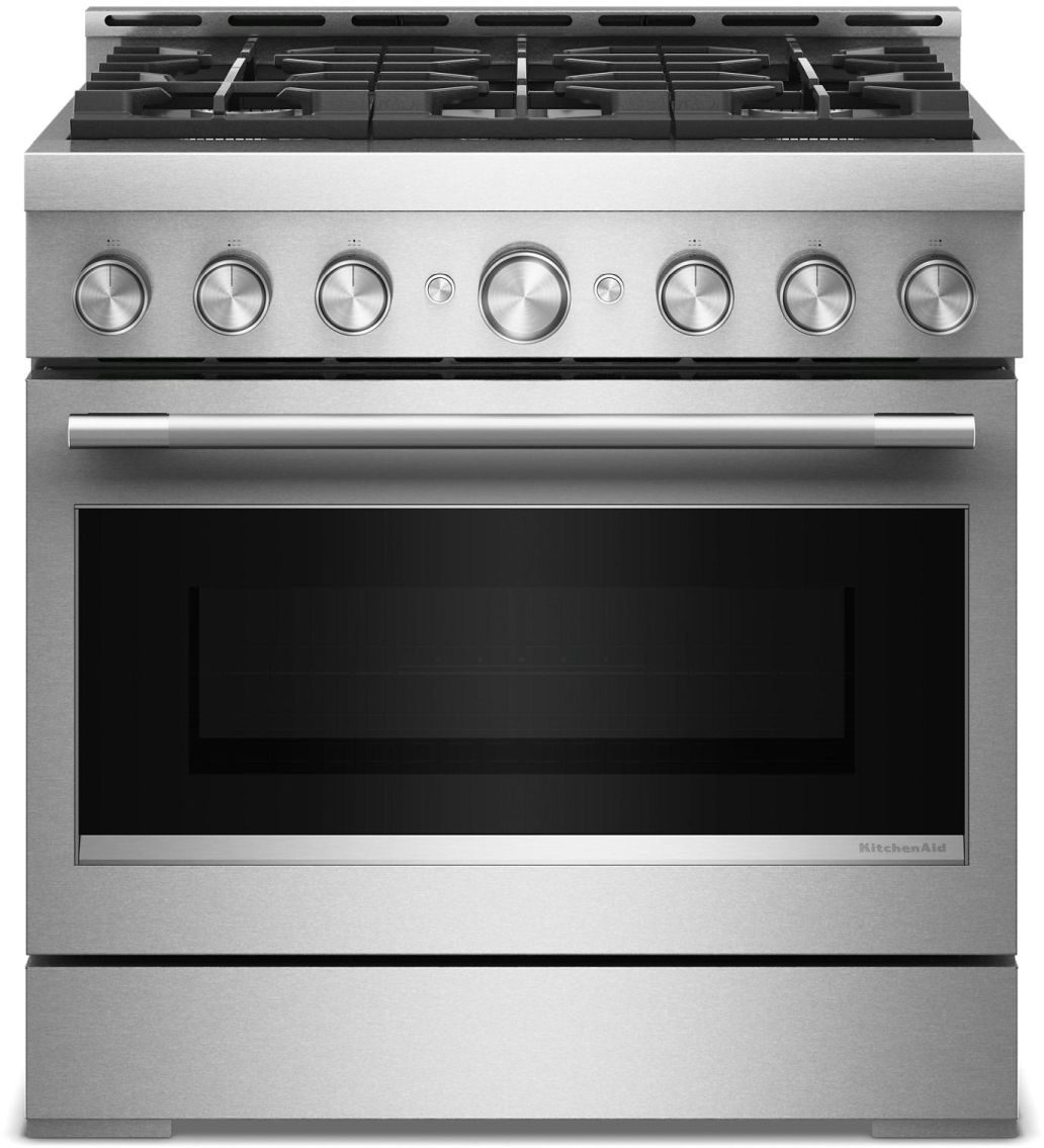 Développez vos compétences culinaires avec une cuisinière de style commercial KitchenAid® de 36 pouces et 6 brûleurs. Ce modèle au gaz comprend deux brûleurs polyvalents à double flamme Ultra Power™ de 20 000 BTU, dotés de la puissance et de la précision nécessaires pour saisir, mijoter et faire sauter avec succès. La convection véritable Even-Heat™ assure une cuisson et un rôtissage uniformes, en plus du mode friture à air qui produit des résultats croustillants et dorés.Read More
