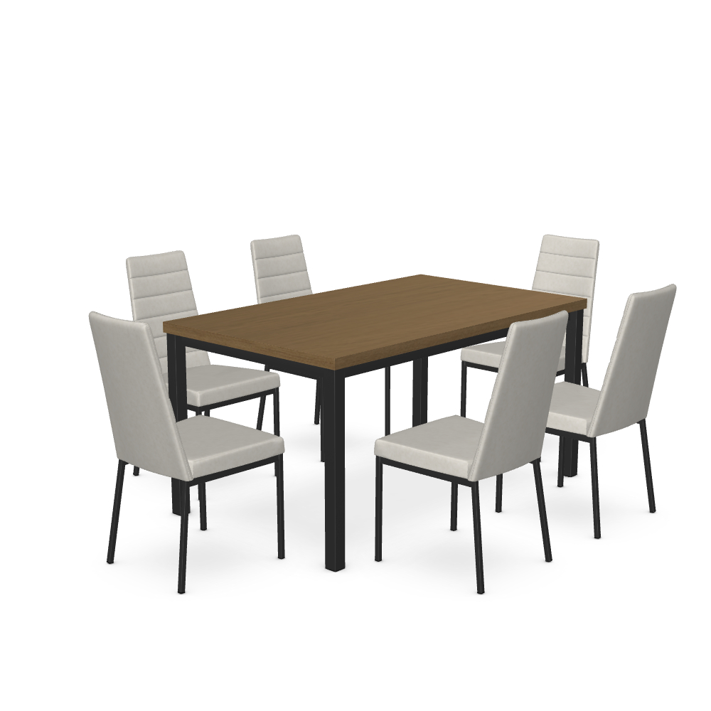 Ensemble 7 mcx avec 6 chaises Luna, agencées avec la table Ricard. Offert en formats différents.Read More