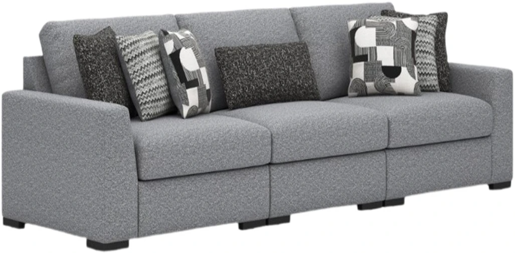 Comprend 3 pièces modulaires : Fauteuil d'angle face à l'accoudoir gauche, fauteuil sans accoudoir et fauteuil d'angle face à l'accoudoir droit