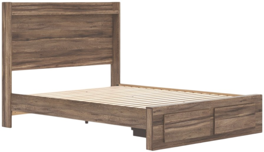 Comprend une Headline à panneaux, un pied de lit avec rangement, des rails et des lattes à rouleaux.